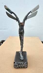 Ses créations sont placées sous le signe du postmodernisme. Son style authentique et original est chargé de messages et de sens. Ses personnages et ses compositions sont des créations audacieuses, le plus souvent étranges, pour la réalisation desquelles l’artiste utilise de la tôle noire, de l’inox ainsi que de vieux objets métalliques, hors d’usage, qu’il associe avec une ingénieuse fantaisie, leur donnant une nouvelle vie. Le jeu, l’ironie et l’humour sont des attributs qui ont toujours été invoqués par les critiques spécialisés en relation avec sa sculpture. Néanmoins, le tragique est aussi présent, dans la forme allongée, parfois émaciée, des silhouettes de ses personnages, qui contiennent en elles des tensions propres à l’homme contemporain, vivant dans un monde tendu, broyé par toutes sortes de maux et d’injustices.