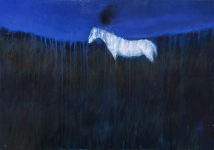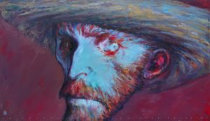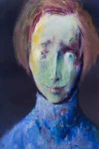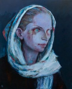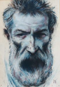 À propos de ses portraits : “Les personnes dans mes peintures n’ont pas de rang, mais elles ont un statut. Quels que soient les personnages, réels ou imaginaires, actuels ou passés, ce sont des êtres vivants, des cris muets dans un monde d’indifférence, cherchant la lumière en descendant dans l’abîme de l’être. Les miroirs brisés en nous… sont la clé des personnages que j’imagine.